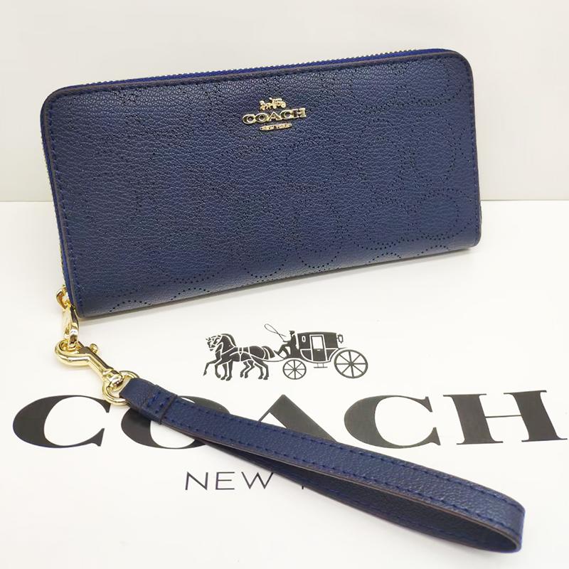 正式的 Coach コーチ 財布 レディース 長財布 パーフォレーテッドレザー スムースレザー シグネチャー パンチング リストレット ロング ジップ アラウンド C4715 Aynaelda Com
